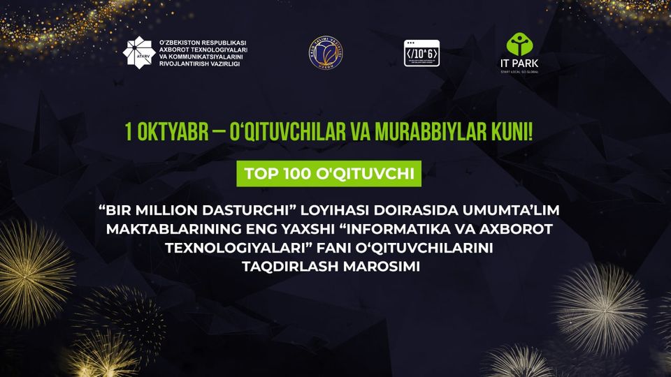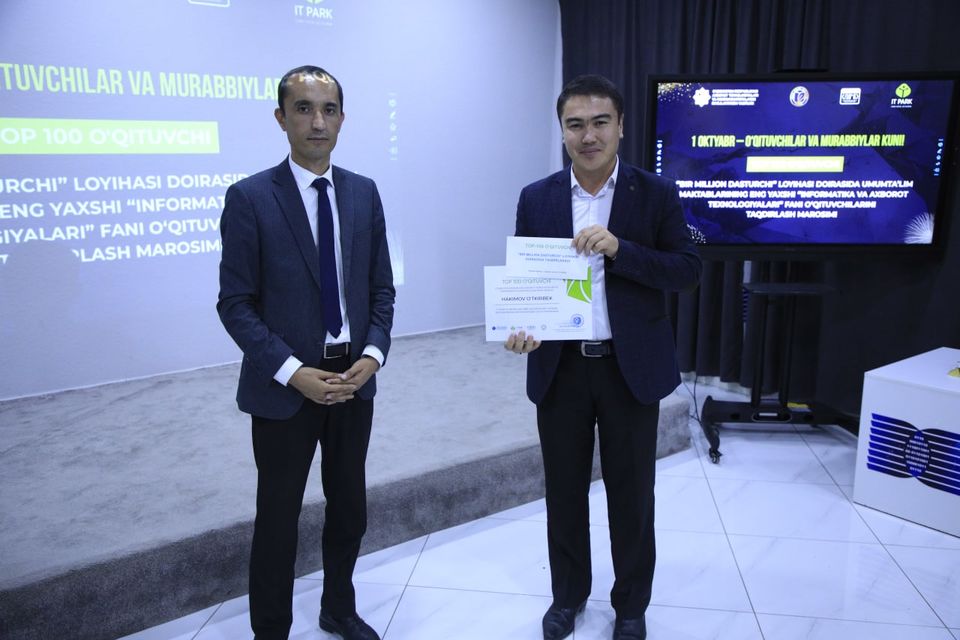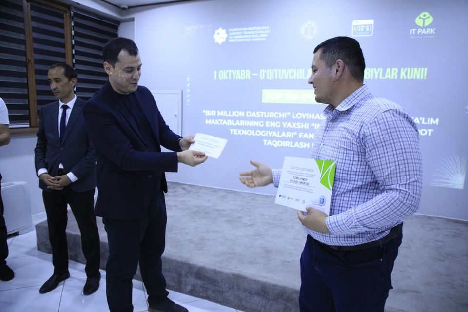 Ахборот технологиялари ва коммуникацияларини ривожлантириш вазирлиги, Халқ таълими вазирлиги, IT Park ҳамда «Dubai Future Foundation» ҳамкорлигидаги «Бир миллион дастурчи» лойиҳаси доирасида ўқув курсларини муваффақиятли якунлаган умумтаълим мактабларининг 100 нафар энг яхши «Информатика ва ахборот технологиялари» фани ўқитувчилари ҳар йили анъанавий равишда рағбатлантирилиб, базавий ҳисоблаш миқдорининг 20 баравари миқдорида бир марталик мукофот пули билан тақдирланиб келинмоқда.